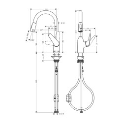 • kilitlenebilir duş spreyi, sprey yönlendiriciye basarak sprey geri döner ve sprey kolu kapatıldığında otomatik olarak geri döner
